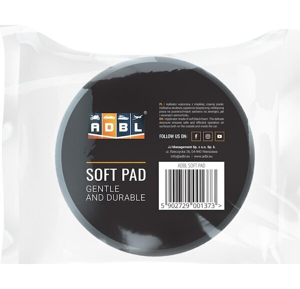 ADBL SOFT - Pěnový aplikátor je 10 cm široký aplikátor na interiéry, vyrobený z měkké černé pěny. Jeho jemná pěnová struktura umožňuje bezpečnou a efektivní práci na površích uvnitř auta.
