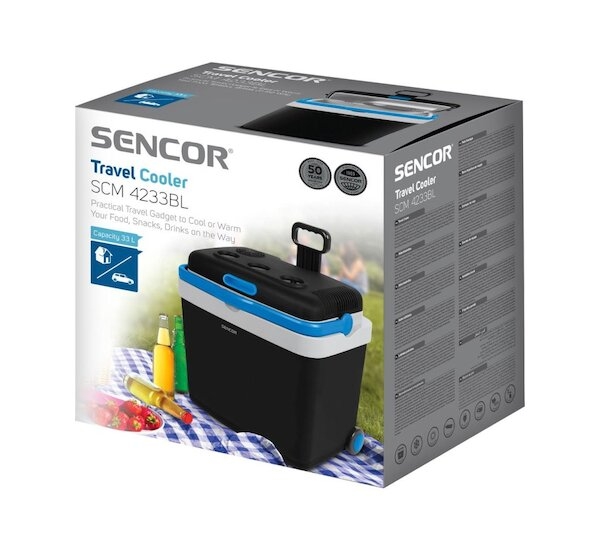 Autochladnička SCM 4233BL-EUE3 značky SENCOR s objemem 33 l představuje praktické řešení pro uchovávání potravin a nápojů v chladu při cestování. Vnitřní teplotu dokáže udržovat o 16 až 18 °C nižší než je okolní teplota a teplota zůstává zachována i dlouho po odpojení od zdroje energie. Napájení 12 V / 230 V zajišťuje flexibilitu použití a funkce ohřevu rozšiřuje možnosti využití. Snadnou přepravu ledničky do auta usnadňuje pevná vysunovací rukojeť a velká kolečka.