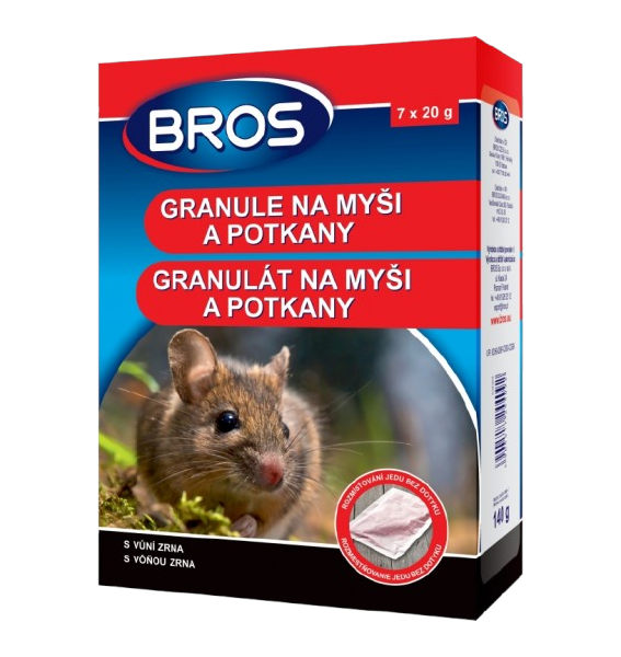 Pelety pro likvidaci myší uvnitř budov a likvidaci potkanů uvnitř i v okolí budov.