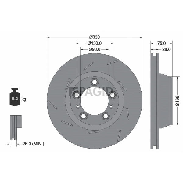 - typ brzdového kotouče:vnitřně ventilováno, s drážkami