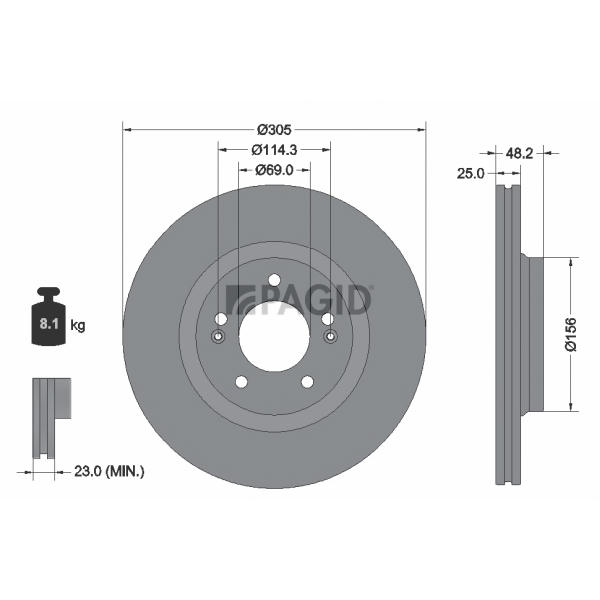 - Centrovací průměr [mm]:69