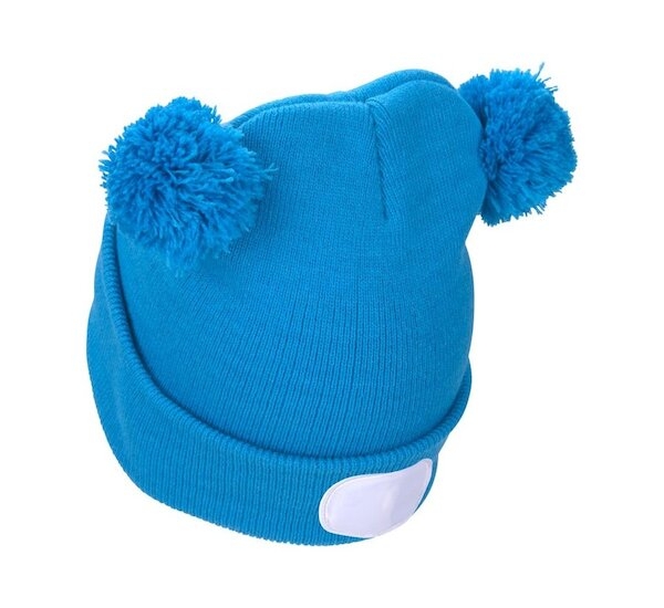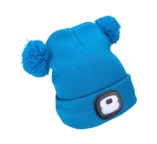 Čepice s bambulí modrá, 4xSMD LED, USB nabíjení