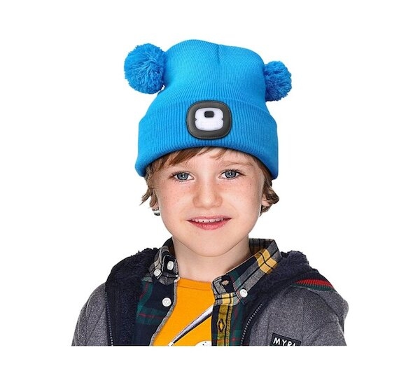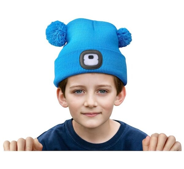 Čepice LED dětská, modrá, vel.M, 4x SMD LED, USB nabíjení