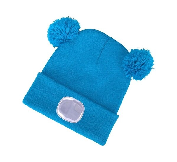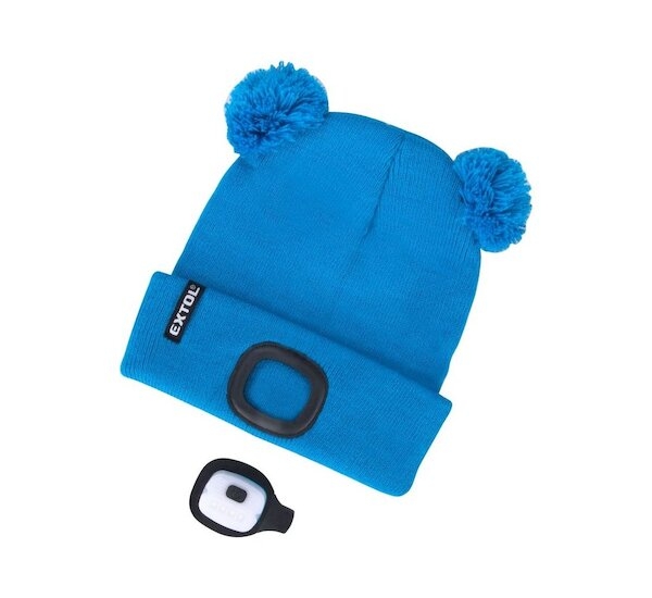 Čepice dětská s čelovkou 4 x 25 lm USB nabíjení modrá s bambulemi EXTOL LIGHT
