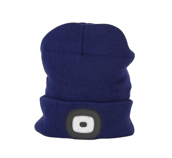 Čepice s bambulí modrá, 4xSMD LED, USB nabíjení