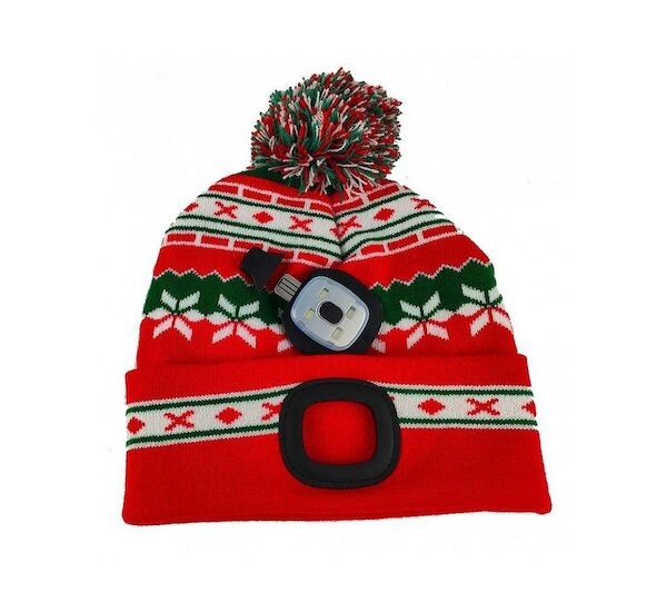 Čepice s bambulí červeno-zelená, 4xSMD LED, USB nabíjení
