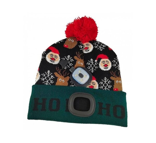 Čepice s bambulí červeno-zelená, 4xSMD LED, USB nabíjení