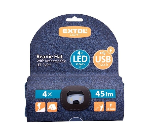 Čepice s čelovkou 4 x 45 lm USB nabíjení modrá/černá EXTOL LIGHT