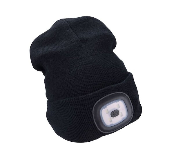 Čepice LED s bambulí, 4xSMD LED, USB, černá, vel.L