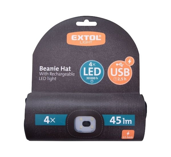 Čepice s čelovkou 45lm, nabíjecí, USB, univerzální velikost EXTOL LIGHT