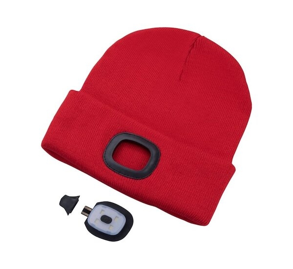 Čepice s bambulí červená, 4xSMD LED, USB nabíjení