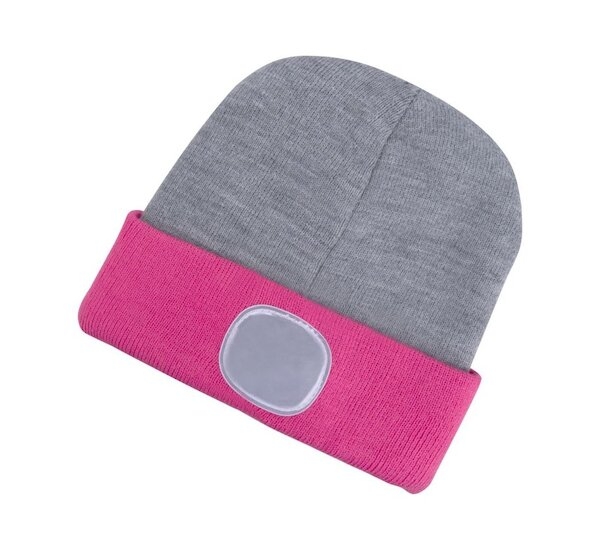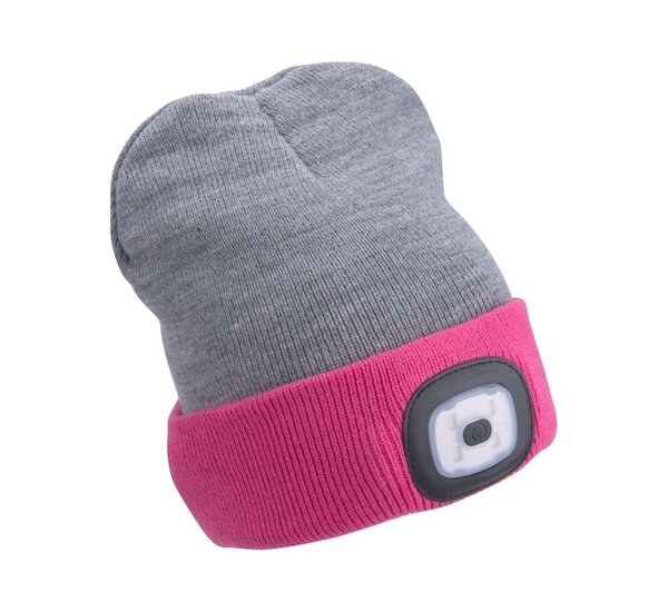 Čepice s čelovkou 45lm, nabíjecí, USB, světle šedá/růžová, oboustranná, univerzální velikost EXTOL LIGHT
