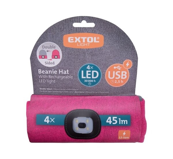 Čepice s čelovkou, nabíjecí, USB, růžová, univerzální velikost EXTOL LIGHT