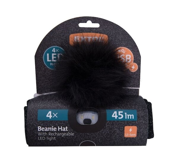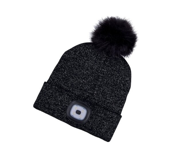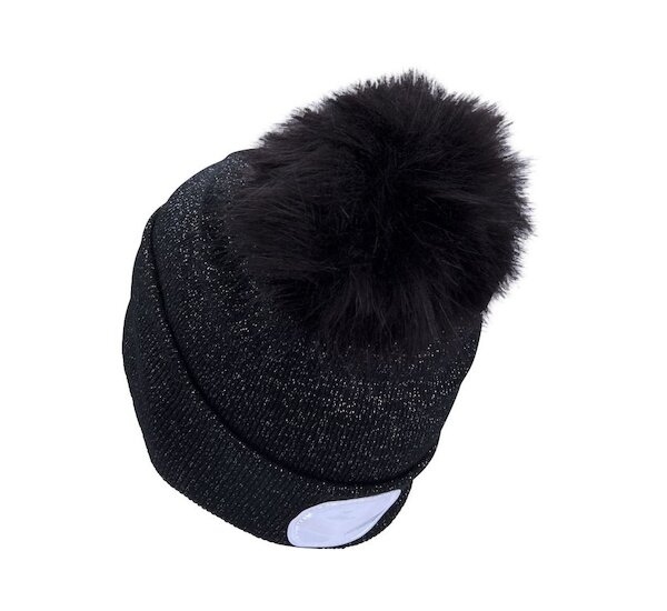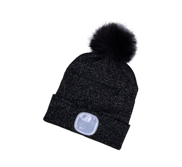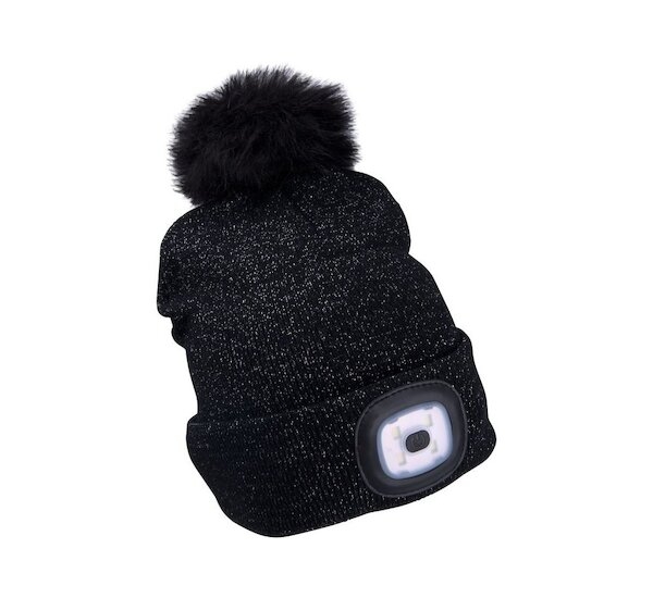 Čepice s čelovkou 4x45lm, nabíjecí, USB, černá se třpytkou a bambulí, univerzální velikost EXTOL LIGHT
