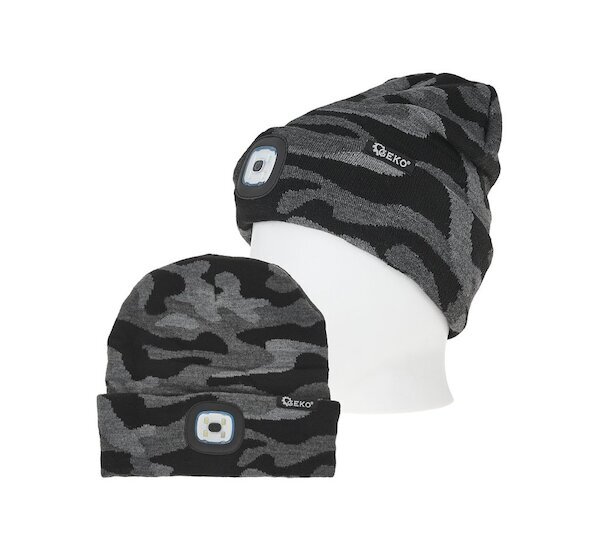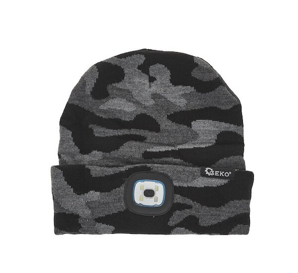 Čepice s LED světlem, USB nabíjení, maskáčová - GEKO