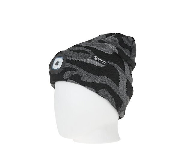 Zimní čepice GEKO s praktickým odnímatelným LED osvětlením 150 lumenů a USB dobíjením. Kvalitní akrylový materiál zajišťuje teplo a pohodlí, maskáčový vzor dodává stylový outdoorový vzhled pro aktivní využití.