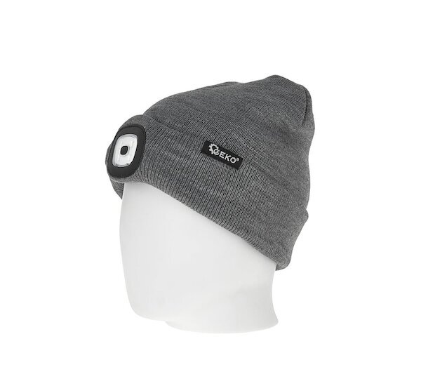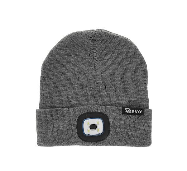 Čepice s LED světlem, USB nabíjení, šedá - GEKO