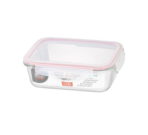Dóza na potraviny obdélníková skleněná 1500 ml, plastové víko s Clip uzávěrem – MagicHome