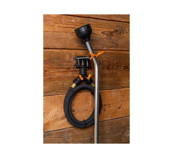 Speciální úchyty pro zavěšení za konektor umožňují praktické uložení zahradních postřikovačů, rozprašovacích pistolí, zavlažovacích trysek a dalšího příslušenství, které se standardně připojuje k zahradní hadici prostřednictvím kovového nebo plastového konektoru. Tyto úchyty bezpečně drží příslušenství za spojovací část, což zajišťuje stabilní a spolehlivé zavěšení.