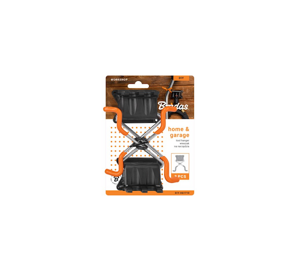 Držák na nářadí BRADAS představuje ideální způsob, jak udržet pořádek v garáži, sklepě nebo zahradním domku. V balení jsou dva držáky, z nichž každý je vybaven dvěma háčky pro zavěšení běžného nářadí a dvěma dodatečnými úchyty navrženými pro zavěšení za konektor jako je např. rychlospojka.