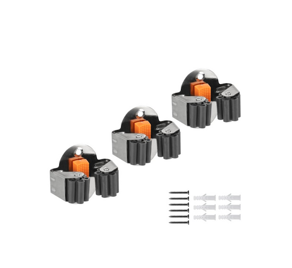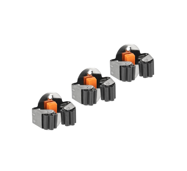 Univerzální použití pro různé typy nářadí - Držáky jsou vhodné pro nástroje s násadou o průměru 20-35 mm - hrábě, lopaty, motyky, vidle či další zahradní pomůcky. Gumové válečky poskytují šetrné sevření bez poškození povrchu násady a eliminují nechtěné uvolnění nástroje.