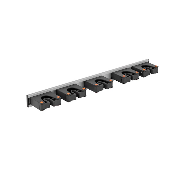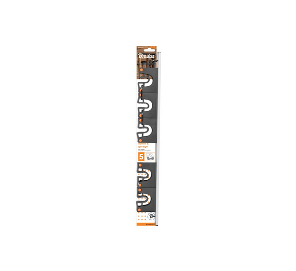 Praktický držák na nářadí BRADAS s pěti závěsy na hliníkové liště délky 51 cm zajistí efektivní organizaci pracovního prostoru. Kvalitní držáky z ABS a TPR materiálu pro nářadí s násadou o průměru 20–30 mm s maximálním zatížením 2 kg na jeden závěs.