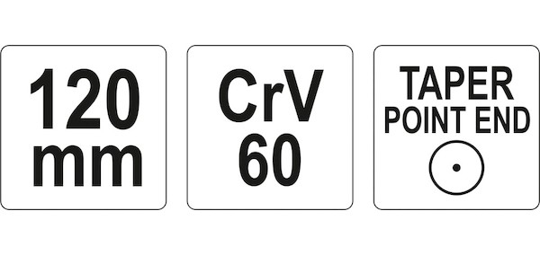Celková délka 120 mm, rukojeť s šestihranným profilem 9,4 mm. Vyrobeno ze slitiny ocelí CrV55,CrV60 a CrMo.
