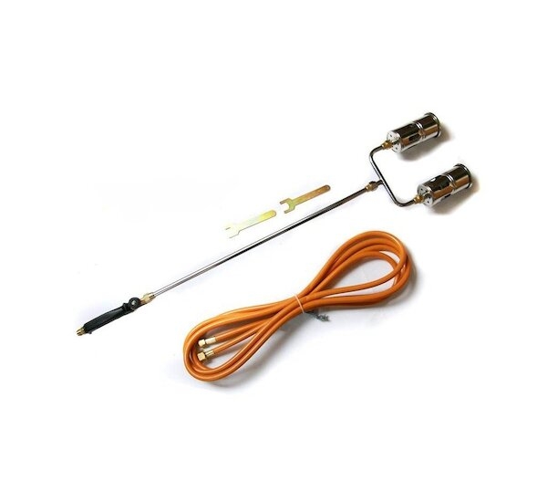 Plynový dvojitý hořák Propan Butan, letovací souprava pokrývačská. Přesně a důkladně vyroben, má rukojeť s regulací plynu. Dodáván se 2 klíči k výměně koncovek. Vhodný zejména pro izolatérské práce a nahřívání, pájení, opalování, ohýbání a tvarování termoplastických materiálů v případě velkého tepelného výkonu.