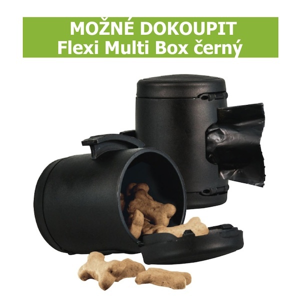 Vodítko je kompatibilní s Multi Boxem na pamlsky či sáčky na exkrementy. Flexi Multi Box černý objednáte pod kódem 10895.