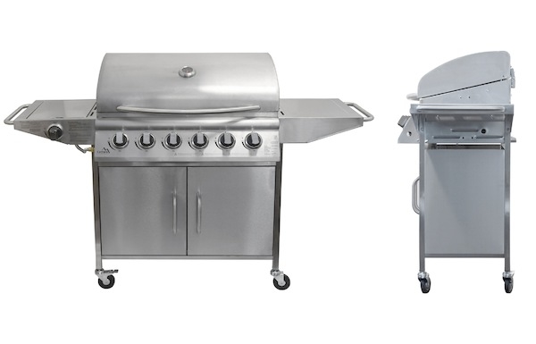Gril je pojízdný (4 kolečka z toho 2 bržděná), osazen sklopným víkem s teploměrem a odkládací poličkou na příslušenství. Dále byl doplněn bočním vařičem se samostatnou regulací a piezo zapalováním. Ve střední části je objemná, uzavíratelná skříňka s dvířky. Součástí je i spojovací hadice k plynové lahvi a redukční ventil.