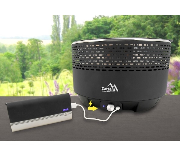 Mezi hlavní výhody tohoto grilu patří zabudovaný větrák, napájený pomocí 4x AA baterií, nebo pomocí mikro USB konektoru (není přiložen), který se používá pro rychlé zapálení ohně a následné rozhoření dřevěného uhlí. Větrák lze plynule regulovat, nebo zcela vypnout pomocí otočného voliče na čelní straně.