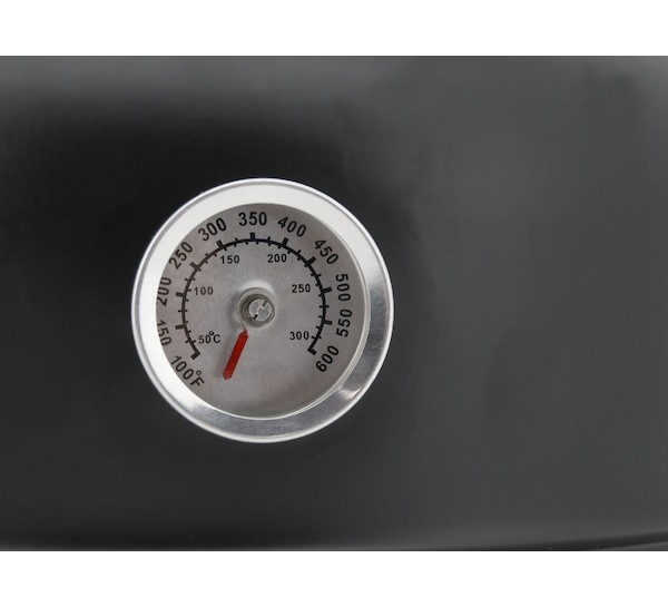 Madla jsou z odolného plastu a mají dostatečný prostor pro úchop. Víko grilu je opatřeno teploměrem pro snadnější kontrolu grilovacího prostoru.