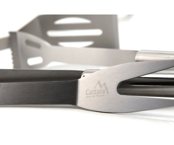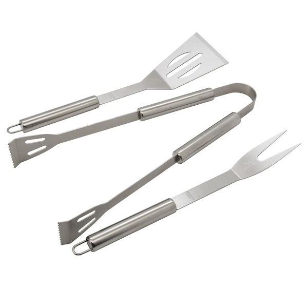 Kleště jsou speciálně tvarovány pro jistý úchop nejrůznějších pokrmů a mají délku 35 cm. Dvouzubá vidlička s délkou 32 cm. Obracečka délky 33 cm s precizně zabroušenou hranou, a odtokovými otvory pro otáčení masitých ale i jiných pokrmů.