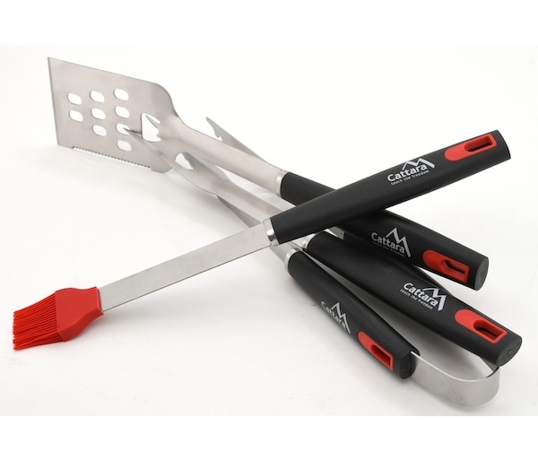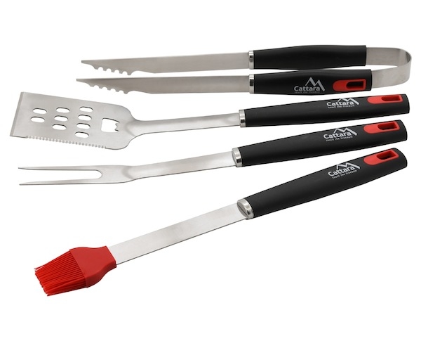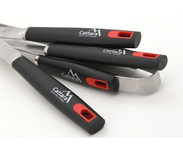 Sada nářadí prémiové kvality INFERNO, skládající se z obracečky, vidličky, kleští a mašlovačky.