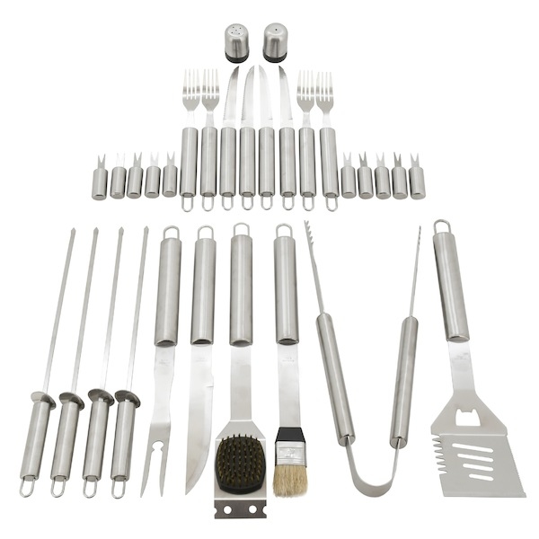 Sada obsahuje veškeré nástroje pro přípravu a konzumaci nejrůznějších pokrmů, ale i následnou údržbu grilu. Veškeré nástroje jsou navíc kvalitně zpracovány z nerezové oceli.