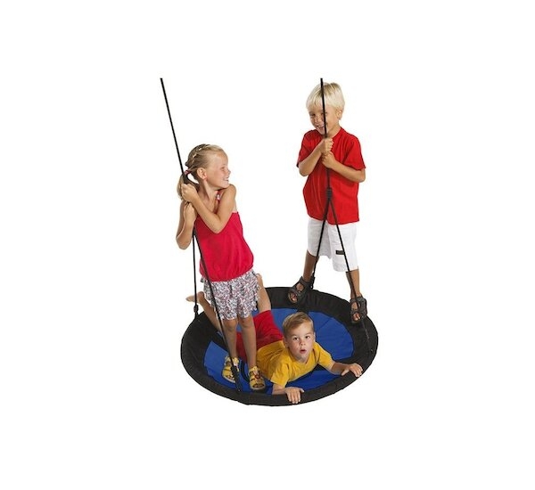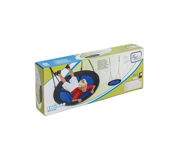 Závěsná houpačka - hnízdo vyrobená z pevného rámu a voděodolné tkaniny + polyethylenové síťoviny, s nastavitelnou délkou pletených lan. Závěsná houpačka "Swibee" je určená kromě bezpečného houpání více dětí najednou také pro odpočinek - na houpačce je možné houpat se vleže.