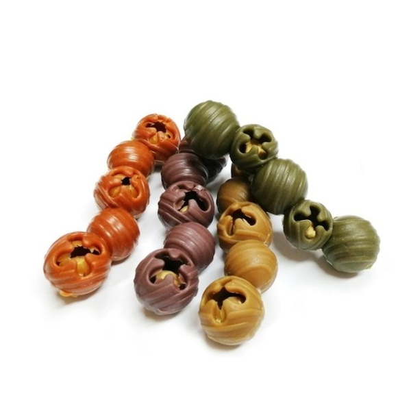 Složení: mouka ze sladkých brambor, mouka ze sladkých fialových brambor, hrachová mouka, kuřecí maso, rostlinný glycerin, arašídové máslo, sušená dýně, sušená rajčata, sušená jahoda, sušená paprika, sušené jablko, sušené mořské řasy, sušená mrkev, sušená borůvka, sušené pivovarské kvasnice, rostlinný olej, uhličitan vápenatý, sorbát draselný.