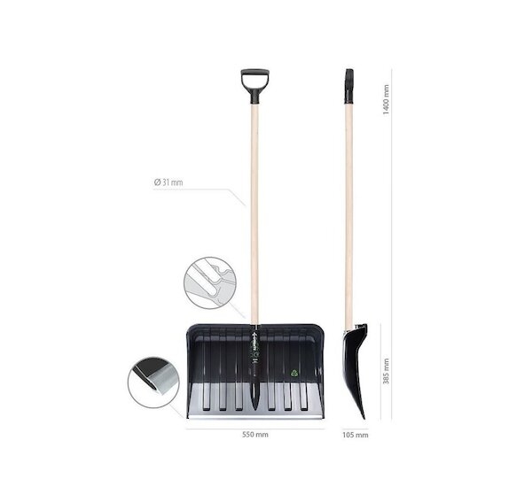 Hrablo na sníh ALPINUS ECO matně černá, 38,5x55cm, dřevěná násada