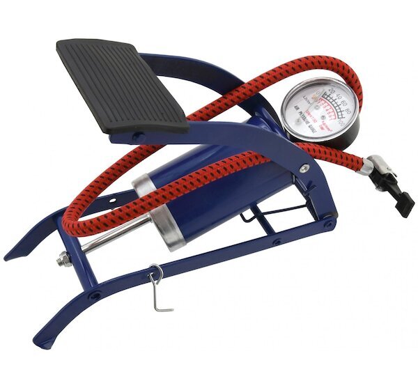 Jednopístová nožní hustilka s manometrem pro přesné huštění pneumatik a dalších nafukovacích předmětů. Vyrobena firmou Vorel z kvalitního kovu.