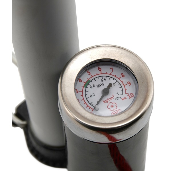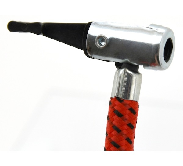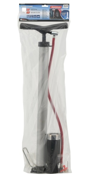 Ruční hustilka s manometrem, vhodná pro huštění pneumatik osobních automobilů, jízdních kol a dalšího příslušenství díky přiloženým adaptérům.