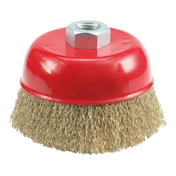Kartáč kotoučový pro úhlové brusky, zhotovení pomosazený ocelový drát vlnitý.