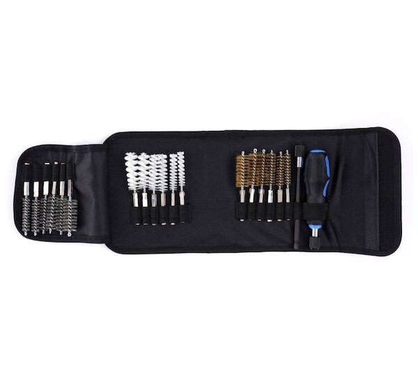 Kartáče na čištění sedel a otvorů vstřikovačů, žhavičů a zapalovacích svíček. Sada obsahuje nástavec, rukojeť a 18 ks čistících kartáčků tří stupňů tvrdosti a šesti velikostí. Kartáče jsou vhodné i pro použití v elektrických a pneumatických vrtačkách. Sada je mimořádně užitečná pro čištění a odjehlování válců, objímek, potrubí, objímek zapalovacích svíček, vstřikovačů atd. Celá sada je dodávána v praktickém pouzdru.