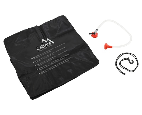 Zhotovení z odolného PVC černé barvy s vnějšími rozměry naplněného vaku 40 x 40 x 26 cm. Vak je navržen tak aby se po zavěšení na slunném místě voda ohřála pro příjemné osprchování.