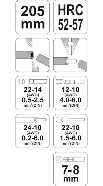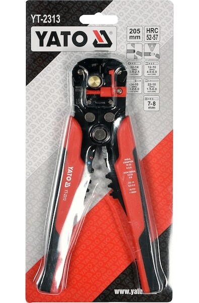 Multifunkční izolační kleště YT-2313 se zčernalým povrchem, který chrání před korozí. Rukojeti potažené dvousložkovými plastovými krytkami. mechanismus pro rychlé a automatické odizolování plochých i kulatých kabelů v rozsahu od 0,2 mm2 do 6,0 mm2 konce pracovních čelistí jsou vyrobeny z oceli kalené na úroveň HRC 52-57 možnost řezání drátů možnost lisování krimpovacích konektorů možnost lisování izolovaných konektorů