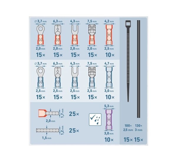 Multifunkční kleště odizolovací, krimpovací 0,5-6mm s konektory a pásky, sada 100ks MAR-POL