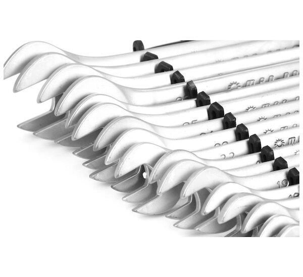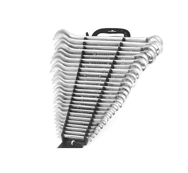 Sada 25 ks očko-otevřených klíčů 6-32 mm, vyrobených z chrom-vanadové oceli uložené v praktickém plastovém klipu na zavěšení.