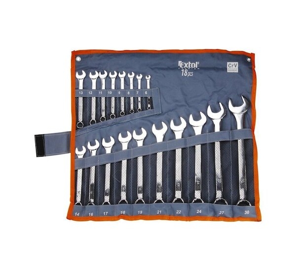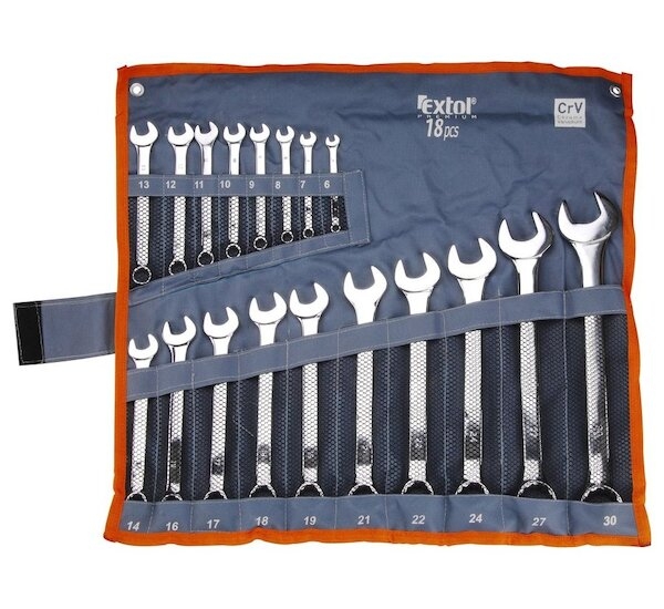 Klíče očkoploché, sada 18ks, 6-30mm, CrV, EXTOL PREMIUM