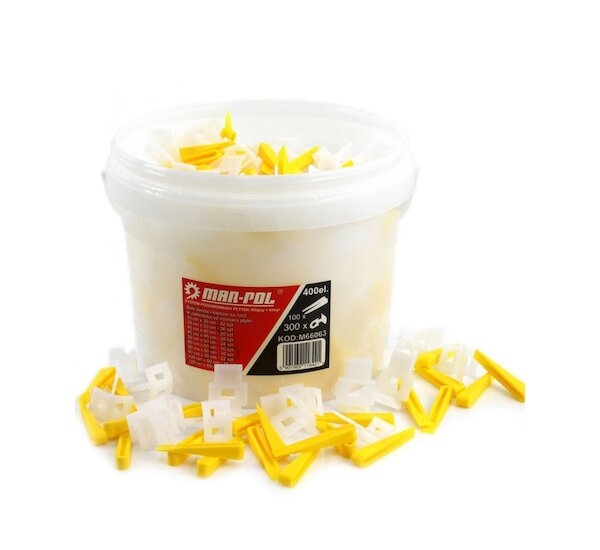 Klíny a klipy na vyrovnání dlažby v kbelíku, sada 400 ks, MAR-POL