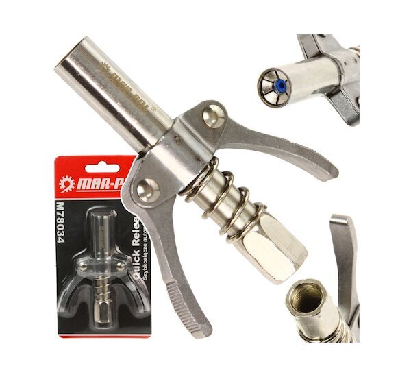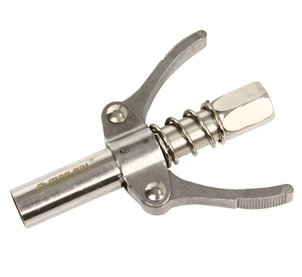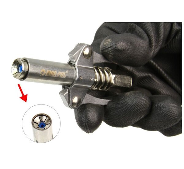 Koncovka je univerzální - kompatibilní s různými typy maznic (manuální, pneumatické i elektrické) a s mazacími hlavami M6 / M8 / M10 / M12 / M14 a je vyrobena z pozinkované oceli, která zajišťuje vysokou odolnost při používání. Konstrukce vybavená šesti čelistmi a těsněním zabraňuje úniku během provozu. Silnější pružiny poskytují silnější zajišťovací sílu. Oboustranná rukojeť umožňuje pohodlné ovládání jednou rukou.