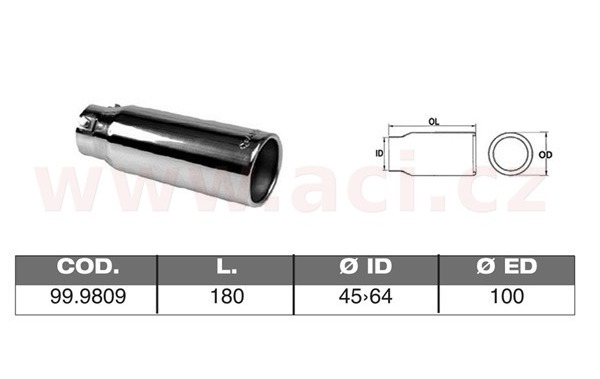 koncovka výfuku nerezová kulatá, vnější průměr 100mm, délka 180mm, vnitřní průměr 45-64mm ASSO